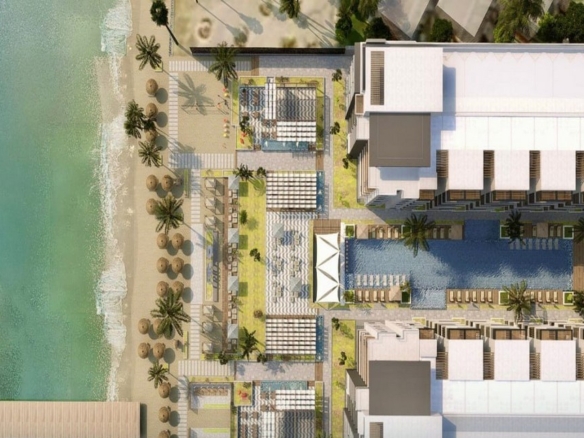 The architectural concept embraces a contemporary approach, maximizing natural light and showcasing sea vistas from various vantage points within the development.