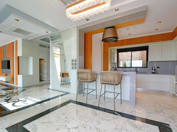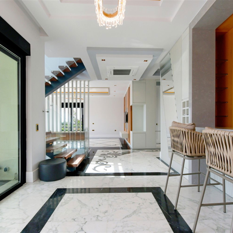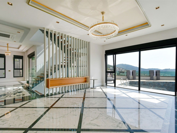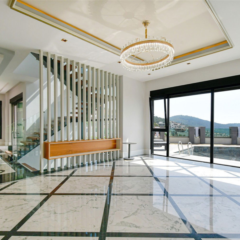 There are homes that you walk into and simply know they were designed to impress. This villa in Kargıcak is one of them. Set high above the coastline, with uninterrupted views over the Mediterranean, Alanya Castle, and the Taurus Mountains, it feels like a private retreat suspended between sea and sky. Every corner of the property radiates elegance: the infinity pool glitters in the sunlight, terraces stretch outward for endless evenings with friends, and the interiors reveal marble floors, sleek lighting, and vast glass surfaces that let the landscape flow right inside.Unlike a standard villa for sale in Alanya, this property tells a story of modern luxury shaped for both comfort and status. It was completed in 2024 with cutting-edge materials, full underfloor heating, and smart-home technology. Consequently, you don’t just live here — you control the atmosphere with a touch, you host with ease, and you wake every day to panoramas that remind you why people call the Mediterranean lifestyle priceless. Moreover, because the property qualifies for Turkish citizenship, it holds not only emotional but also strategic value for international buyers seeking a long-term connection to Turkey.Architectural character and first impressionsThis luxury villa in Turkey does not hide its ambition. From the moment you approach the gated entrance, the geometry of the building signals confidence: clean lines, generous terraces, and a south–east–west orientation that maximizes sunlight and view corridors. The 520 m² plot allows the villa to breathe; garden spaces surround the pool while wide balconies extend each floor outward.Glass dominates the façade, yet stone and warm textures ground the design. The infinity pool merges visually with the horizon, producing that magical effect of swimming directly into the Mediterranean. During the day, the water reflects blue skies; at sunset, it becomes a mirror of the glowing coastline.Inside, the open-plan living areas use marble flooring and recessed lighting to create a cool, airy feel. High ceilings and large surfaces of glass encourage the landscape to become part of the décor. Meanwhile, smart-home integration makes daily living effortless: lighting, heating, and even security respond to remote control.Interior layout — 5 rooms designed for modern lifeAt 285 m² net, the villa’s interior ensures comfort for every family member. Five spacious rooms can adapt to different needs: bedrooms, guest suites, or a private office.Living area:A bright open space connected to the terrace. Floor-to-ceiling windows frame the sea and castle views. The flow between indoor lounge and outdoor sitting areas keeps life connected to the climate.Kitchen and dining:Designed for both everyday meals and social evenings. The layout supports white goods, ample storage, and a central island. Moreover, the dining zone benefits from sliding doors that open to the terrace, so meals naturally spill outdoors.Bedrooms:Each room offers space for rest with access to views. The master suite includes a dressing room, modern en-suite bathroom, and a balcony overlooking both sea and mountains.Bathrooms:Multiple units finished with marble and modern fittings. Private Turkish bath and sauna facilities transform the villa into a wellness retreat.Flexibility:One of the five rooms easily becomes a study, gym, or media room. As a result, the villa adapts to changing lifestyles.Wellness and leisure — private luxury facilitiesThis villa transforms daily living into a resort experience. Beyond the infinity pool, you enjoy a private Turkish bath, sauna, and even a mini bar near the outdoor sitting areas. The flow of space encourages relaxation: after a swim, you pass directly to the terrace for drinks, or step into the sauna before cooling down under the night sky.Barbecue areas, shaded sitting corners, and open terraces provide variety for gatherings. Children’s pool sections make family life easier, while adults appreciate the calm of the infinity edge. Consequently, every generation finds its rhythm here.Smart technology and comfortFullunderfloor heating systemacross all rooms, ideal for year-round use.Smart home systemwith remote control, enhancing security and comfort.24/7 camera securityintegrated with the caretaker presence.Electric water heatingand modern white goods included.Generatorfor uninterrupted service.Because the property is brand new (built in 2024), all systems meet current standards. Maintenance worries remain low, and energy efficiency supports sustainable living.Location — why Kargıcak stands outKargıcak has become one of Alanya’s most prestigious residential zones. Perched on rising terrain east of the city center, it offers panoramic views that few neighborhoods can match. The atmosphere is quieter than central Alanya, yet you remain within comfortable reach of the city’s beaches, shopping, and cultural life.Distance to sea:2.5 km — close enough for daily swims, yet high enough for dramatic views.Access:Easy roads connect Kargıcak to Alanya center (about 15 minutes) and to Gazipaşa Airport (around 25 minutes).Surroundings:Vineyards, pine forests, and villa estates shape the landscape. International residents have established a strong community here, while local services like markets and restaurants keep routines practical.Consequently, Kargıcak balances exclusivity with accessibility. You live above the bustle, yet not cut off from everyday needs.Investment and citizenship potentialFor foreign investors, this villa represents more than a lifestyle purchase. Because of its value and legal status, it qualifies directly forTurkish citizenshipthrough investment. This adds a strategic layer: not only do you secure a luxury villa in Turkey, but you also gain the right to live, work, and travel with a Turkish passport.From an investment angle, the villa’s combination of location, facilities, and design ensures strong future resale value. Demand for sea view v