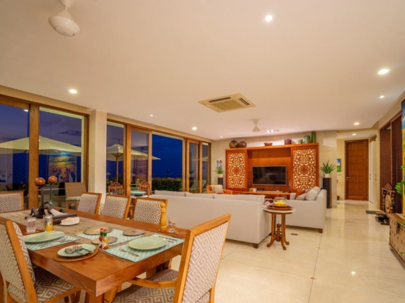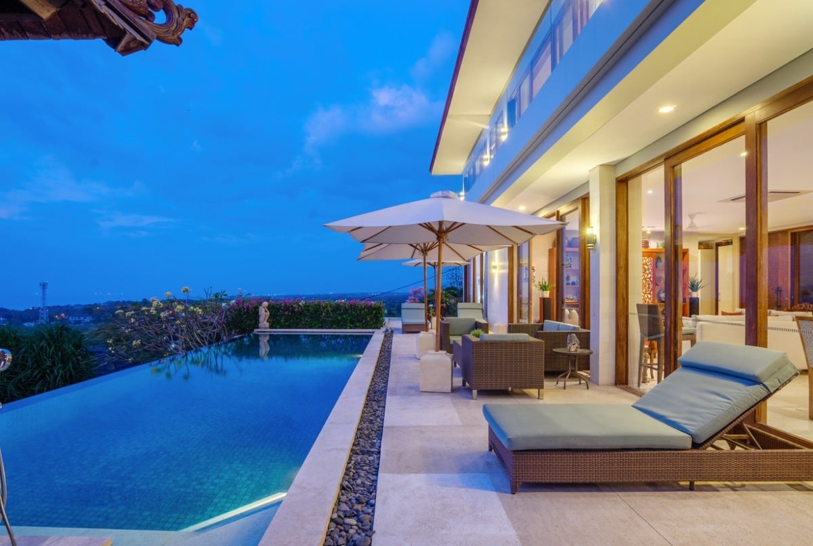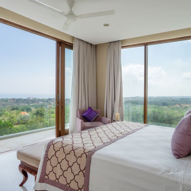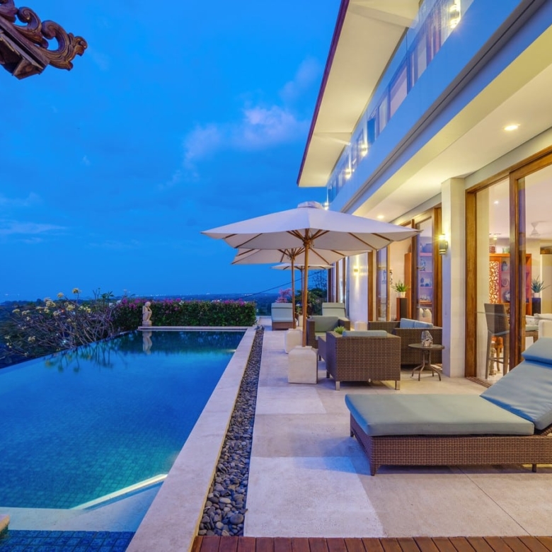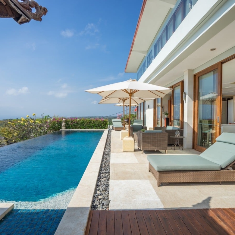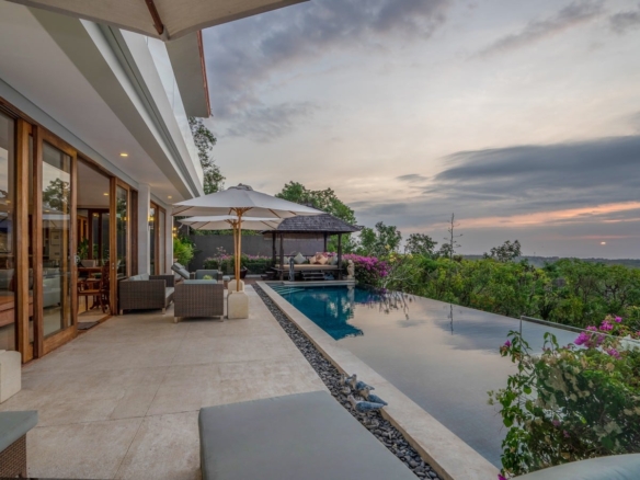 This masterfully crafted three-bedroom villa sits in the foothills above Labuan Sait and looks out over panoramic views of the turquoise blue Indian Ocean.This 500 m² home was expertly designed and finished by one of Bali’s premier architectural and building companies & resides on an expansive 1448 m² lot,which features open plan kitchen, living & dining area with views over the infinity edge swimming pool. The three spacious bedrooms have ensuite bathrooms and capture dynamic ocean views. The Villa is tastefully decorated with Indonesian and Asian themes.Other features include an expertly manicured garden,bale bengong,wrap around balcony,3 car parking & a luxurious staff quarters. This lovely home is only minutes away from Padang Padang & some of Bali’s most beautiful beaches and is only 20 km from the international airport.