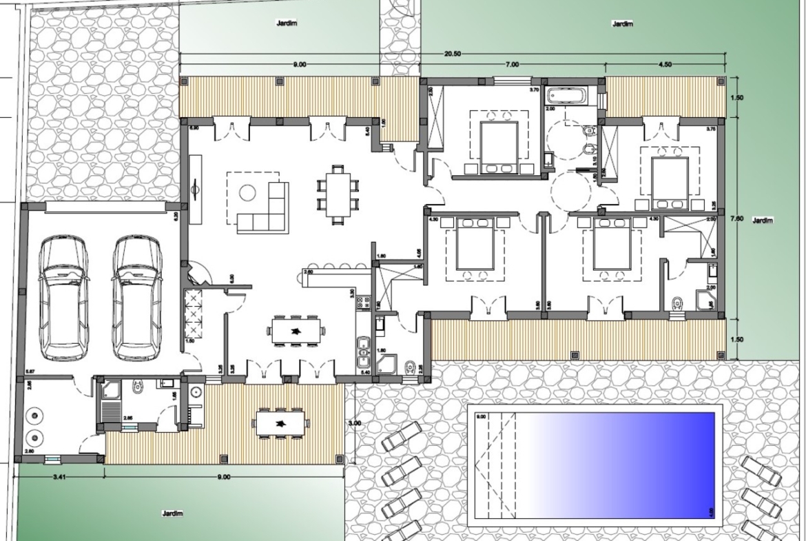 Construction already started. Single storey 4 bedroom house with pool, garden and garage for two cars in Pataias, Alcobaça parish.