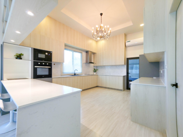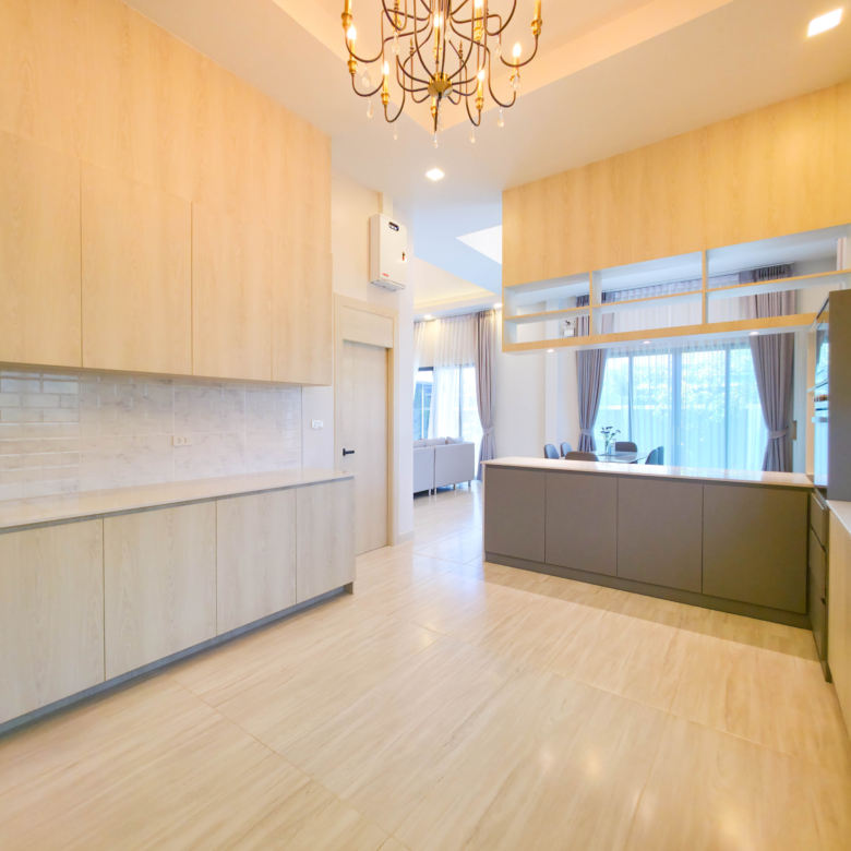 Inside, you’ll find 3 spacious bedrooms and 4 bathrooms, a European kitchen for modern cooking, and a separate Thai kitchen for convenience. The highlight is the private 3×8 m. swimming pool with waterfall feature, creating a relaxing tropical atmosphere.