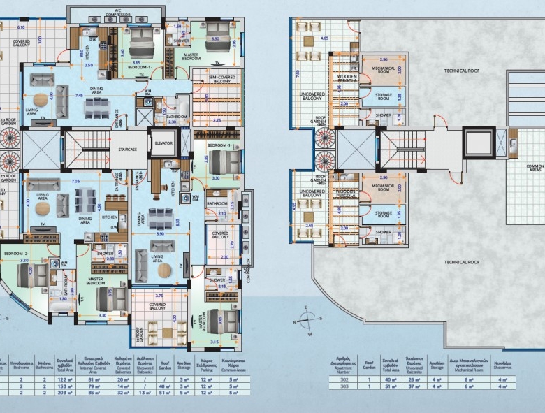 A modern design apartment building emphasizes the detail and ensures privacy for their residents. It is a three-story buildingapartment building with comfortable and modern apartments. The first and second floor consist of two apartmentsof two bedrooms and one of three. The third floor has three apartments of two bedrooms and additionally separate Roof Garden for each apartment. There is covered parking and storage room for each apartment. The project arises after the coordinated design of an experienced team architects, civil engineers and interior decorators
