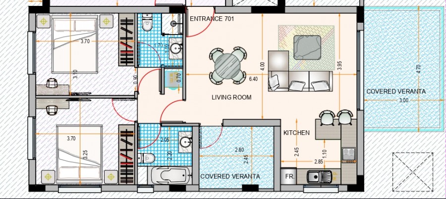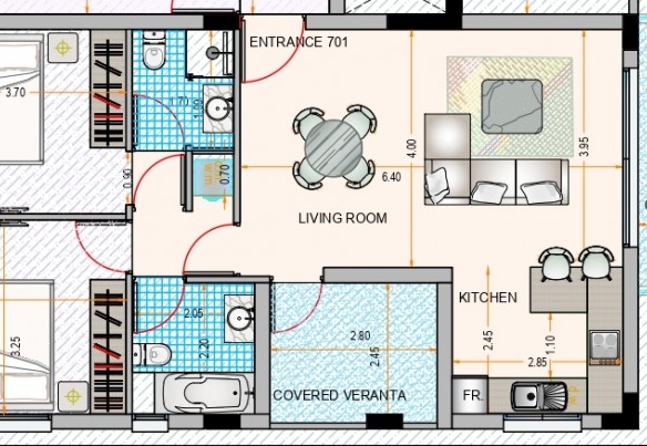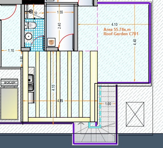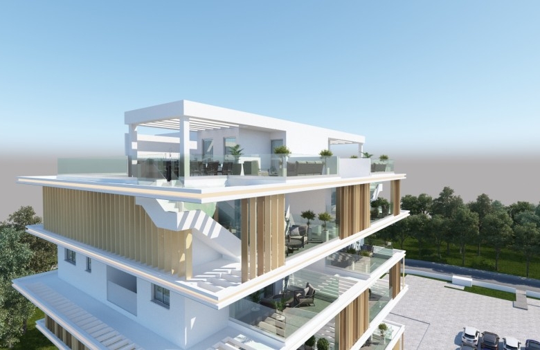 The project boasts sixteen apartments in total 6 one bedroom & one bathroom on the first and second floor and 10 two bedroom & two bathroom apartments on rest of the floors- all with spacious and contemporary living areas. There are three apartments per storey – ensuring optimum privacy for potential buyers. The five floor apartments benefit from individual private and luxury roof-gardens with amazing views of the lovely Neighbourhood. Each apartment has one parking bay and a storage room on the ground level. This unit has a roof garden of 56 square meters with a extra room. Delivery-July 2026