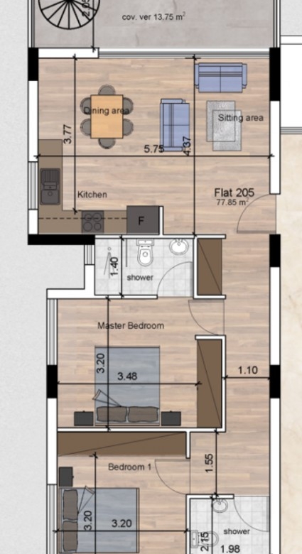 High end residential project in a well sought out area in Larnaca. Ideal investment for rent, luxurious and quiet neighborhood. Built with modern architectural design and high quality finishes. Close proximity to key local amenities and services. This unit has a roof garden area of 53 square meters with a private bathroom and store room. Delivery-September 2025