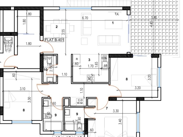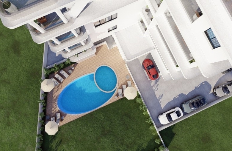 This project boasts a very original, affluent and futuristic design of high artistic caliber, with numerous architectural features and exterior finishes. This A’ class energy efficient building comprises 14 spacious apartments with large veranda areas, en-suite bathrooms, large kitchen, covered parking and storage rooms. The project also sports communal adult and kiddy pools, equipped with both outdoor and indoor shower facilities and extensive landscaped green areas. Very conveniently located in close proximity to the Radisson-Blu hotel, a mere 2 minutes from the beach and within easy walking distance to the town Centre with its many shops, restaurants, cafes bars and other local amenities. The location also offers very easy access onto the highway network. However, being set off the main strip, this location offers you all the benefits of quiet residential living while allowing easy and quick access to Larnaca’s popular nightlife. This unit has a roof garden of square meters.
