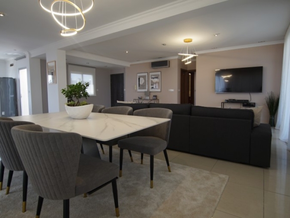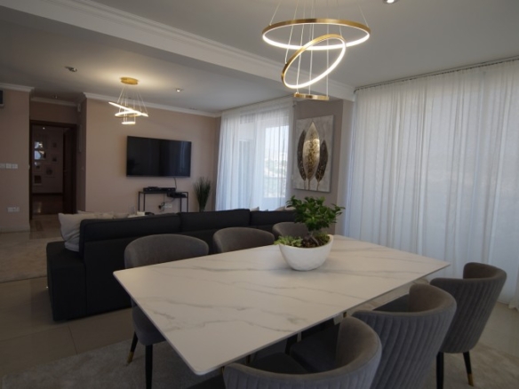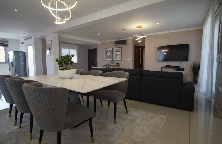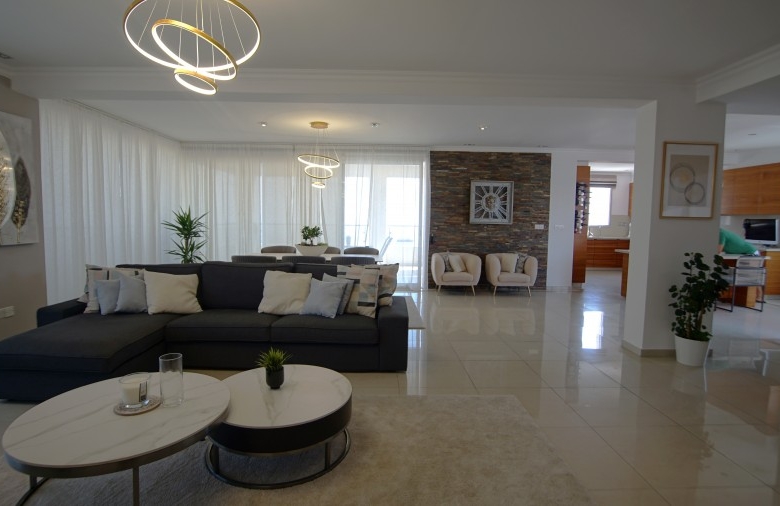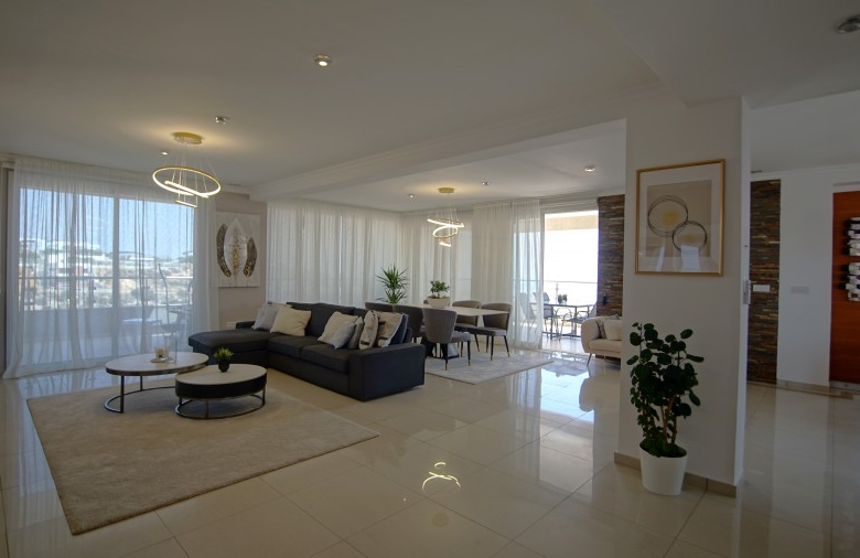 Rented A luxurious penthouse nestled in the serene neighborhood of Ayia Fyla. This expansive residence boasts ample space and presents awe-inspiring, panoramic vistas that encompass majestic mountains as well as the entirety of the Limassol bay area.. Impeccably furnished with a selection of modern and chic furniture, the penthouse is equipped with air conditioning and fans in every corner, ensuring utmost comfort. The addition of electric shutters on the windows not only adds a layer of security but also enhances privacy. The kitchen stands as a testament to functionality and style, featuring an abundance of workspace. The presence of elegant, dimmable lighting further adds to the overall allure of this remarkable penthouse.