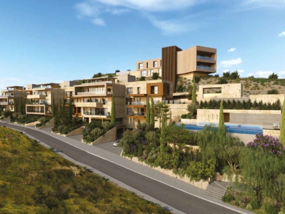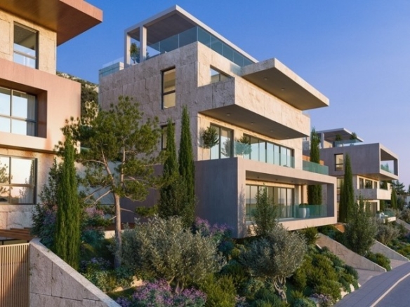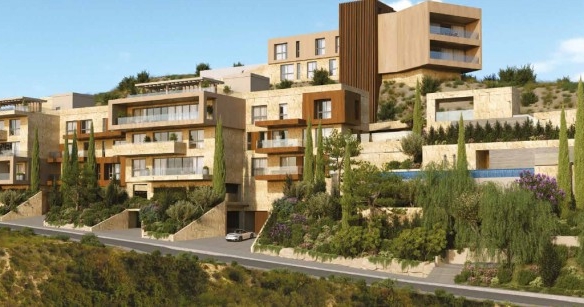 The project comprises four buildings nestled on top of a quiet hillside, on the eastern side of Limassol. Its prime location on an elevated plane in one of Limassol’s most exclusive areas, surrounded by the spectacular views of the sparkling Mediterranean Sea. Each apartment is designed and positioned in such a way as to allow unobstructed views of the surrounding large open spaces, which feature a wealth of greenery and the ancient ruins of Amathounta nearby. Ensuring privacy and convenience, the apartments are securely gated and accessible from two separate roads and offer easy access to the highway. All four buildings will be surrounded by lush botanical landscape gardens. This penthouse with spectacular sea views features a 106 sqm roof terrace. Delivery – June 2025.