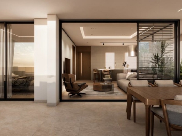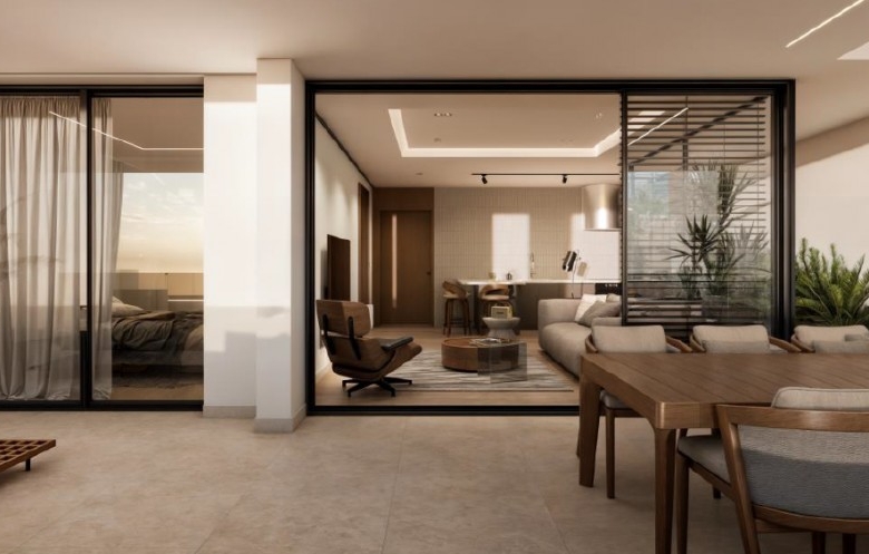 This luxurious 2-bedroom penthouse features a contemporary open-plan design, seamlessly connecting the living spaces to spacious covered balconies with designated green areas. A private roof garden enhances the experience with a jacuzzi, barbecue area, and covered space accessible from both the veranda and main building entry points. Designed to the highest standards, the residence is rated “A+” for energy efficiency, incorporating solar panels, advanced insulation, provisions for electric car chargers, and energy-efficient appliances to minimize environmental impact and reduce costs. High-quality materials, customizable interiors, and an exclusive Interactive Interior Design experience allow for a tailor-made living space. The building ensures durability and safety with reinforced concrete construction, thermal and moisture insulation, double-glazed windows, and modern electrical installations, providing a sophisticated and sustainable living environment.
