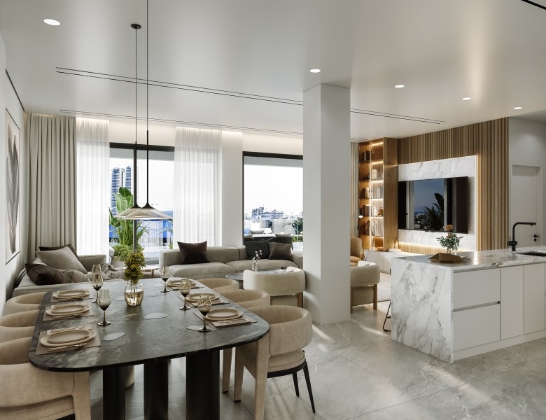 This exclusive development features 9 apartments ranging from 2 to 6 bedrooms, each designed with meticulous attention to detail and high-quality finishes. The apartments boast high-quality porcelain tiles and laminated parquet floors, along with modern Italian high-standard kitchen cabinets and wardrobes. The ceilings in kitchens, toilets, and corridors will be adorned with gypsum boards and built-in spotlights, creating a sleek and modern look. The aluminum windows offer thermal insulation performance with double-glazed glass for added energy efficiency. Each flat will have a solar panel for hot water, a reservoir tank, provision for a water softener, and a pressurized system to ensure optimal water pressure. Experience a new level of luxury living.This Penthouse has a roof garden area of 107 sqm with a private swimming pool and extra room with a bathroom. It also comes with a ground floor studio with a bathroom. Delivery – August 2026