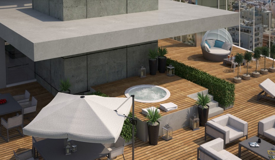 Penthouse has one of the most prestigious and well-known addresses in all of Cyprus – right in Limassol center, linking the modern day city center to the seafront promenade and historic town sites.It stands on one of the most strategic, busiest and fashionable quarters in Limassol’s Central district, surrounded by plush gardens on the one side, and the intersection of the commercial and offshore banking hubs on the other.
