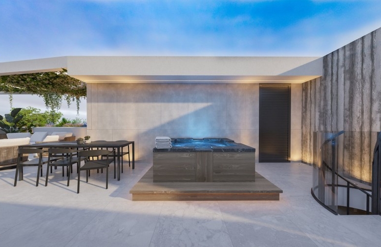 It is a modern four-story building with 11 stylish apartments. It offers a range of 1, 2, and 3-bedroom apartments and features a communal heated swimming pool for residents to enjoy. The highlight of the project is the three-bedroom penthouses located on the 4th floor, each featuring a private roof garden with its own jacuzzi, offering the ultimate luxury and privacy.Each apartment is designed with comfortable bedrooms, a bright open-plan kitchen, a living area, and a large veranda, perfect for relaxing and enjoying the views. Every unit also comes with its own parking space and storage room.Located in the well-known Panthea – Mesa Geitonia area of Limassol, it offers a peaceful lifestyle in a quiet neighborhood. At the same time, it’s close to the city center, with easy access to schools, cafes, and shops.This new development is the perfect combination of style and convenience in one of Limassol’s most sought-after locations.This unit has a 59 sqm private roof garden with a jacuzzi.Delivery – December 2026.