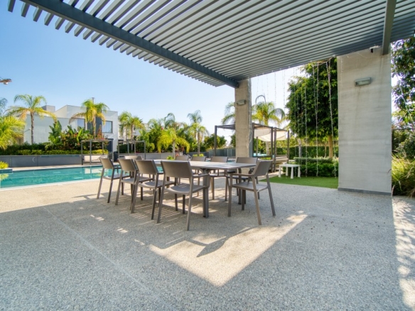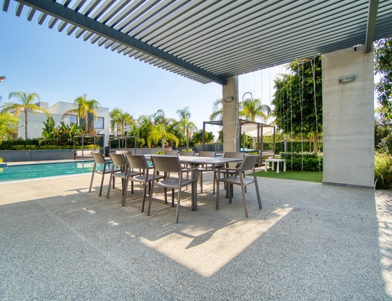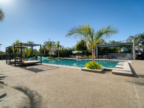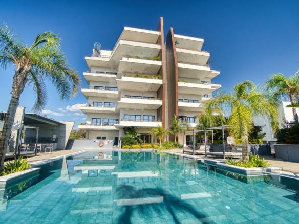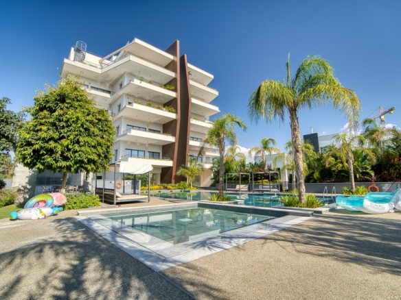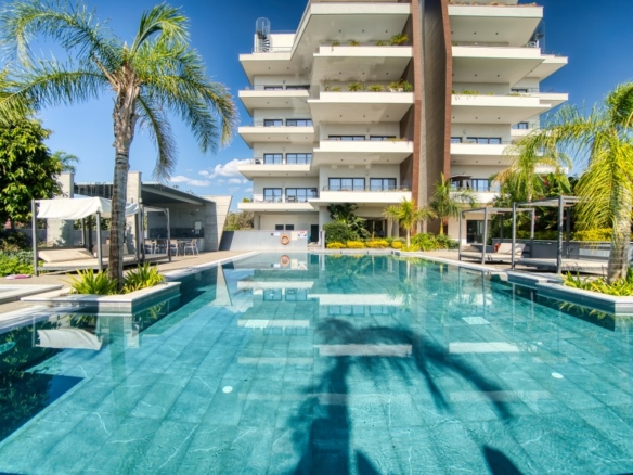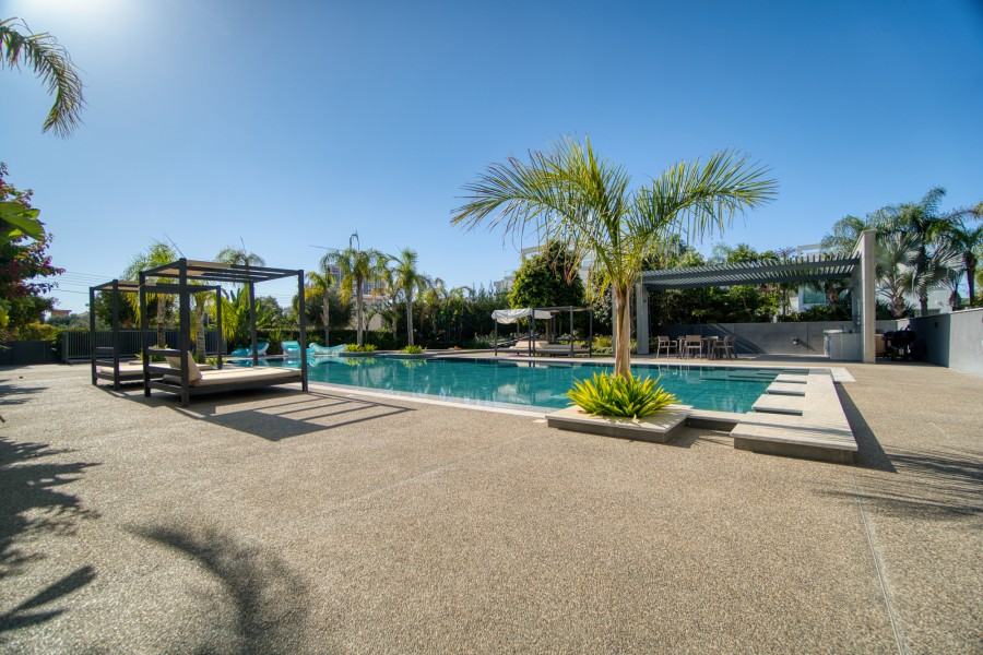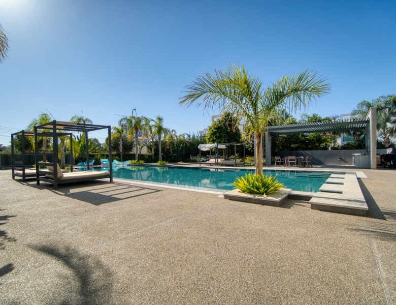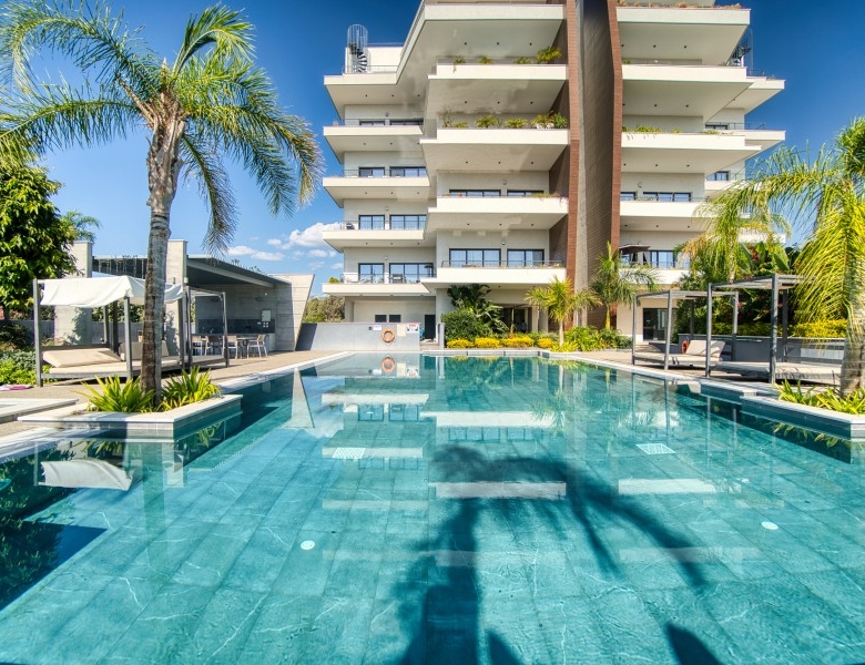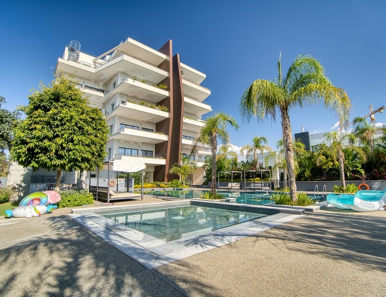 This luxury penthouse is situated in Germasogeia area, just 750m from Limassol’s shoreline and few minutes away from the city center. It consists of five floors and 17 spacious apartments. On the 5th floor one can find 2 luxurious penthouses. It is a 3 bedroom residence with a roof garden of 80sqm where the residents can enjoy their BBQ area and the jacuzzi while looking at Limassol’s coastline. It is possible to construct on the roof a master bedroom or a guest house or extra bedrooms according to the clients needs. This penthouse comes complete with underfloor heating, VRV cooling system, fire detector, alarm system fully furnished in all Italian brands and Miele electrical appliances. All materials have been carefully chosen by an Interior designer as to provide comfort and luxury. The luscious gardens of the project are carefully designed to create not only tropical vibes but also the space for an outdoor gym, a relaxation area, a BBQ area, a sauna and a swimming pool.