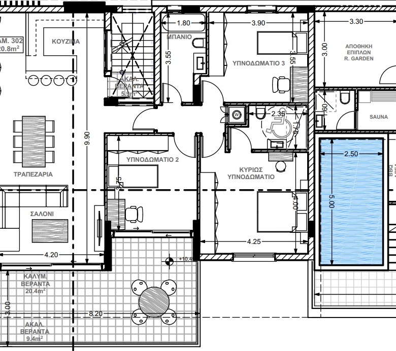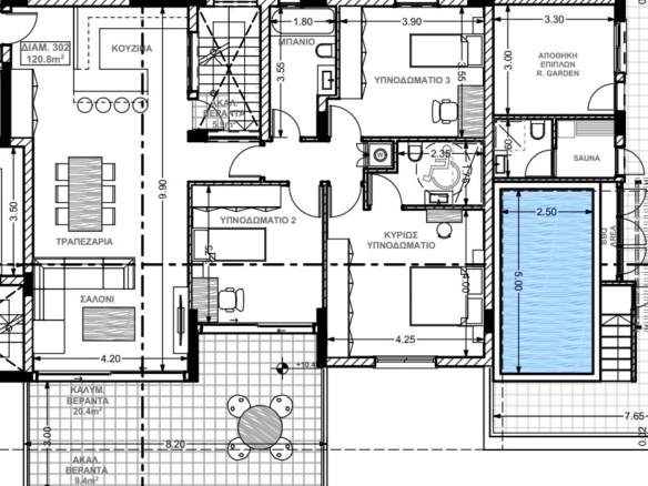 An elite low-rise block house in front of the famous Dasoudi eucalyptus park, within walking distance to the sea. The complex is located in a quiet, picturesque area, yet close to all the necessary urban facilities: there are stores, pharmacies, banks, bakeries, and supermarkets nearby.The elegant and unusual design of the facades is complemented by the own internal infrastructure of the complex, as well as high-quality materials and a high level of construction in general.Its residents are offered a large developed space, a swimming pool, a relaxation area, a gym, private parking lots, storage rooms, and a guarded entrance with limited access.The complex consists of 5 comfortable 2- and 3-bedroom apartments and 3 luxurious 3+1-bedroom penthouses with private rooftop pools. Delivery- December 2025
