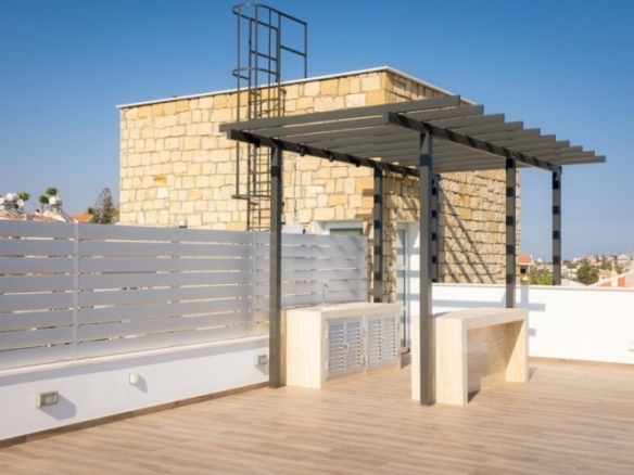This 2-bedroom apartment is housed in a small new-build block of only four 2-bedroom units in Germasogeia, one of the most desirable locations in Limassol. The quiet residential neighbourhood is only 2km from the nearest organized sandy beach. The building is marked by its contemporary, simple lines, and every aspect of design, construction and finishing is geared towards quality and comfort in an urban Mediterranean environment: Elegant entrance lobby, bright interiors, cool superior finishing materials, double glazed windows, ample fitted kitchen cabinets and appliances as well as built-in bedroom wardrobes. Solar heating and split unit air-conditioning are fully installed, while the comfortable veranda with partial view of the sea is an essential component of the Mediterranean lifestyle that the block offers. For each unit there is a designated underground parking space, and the building provides an additional ground floor parking spot for the disabled. A communal roof terrace on the third floor offers residents a place to meet and enjoy the uninterrupted sea view, and a cool escape for evenings under the stars.The combination of prime location, urban comfort and accessibility makes this apartment a convenient base in the cosmopolitan coastal town of Limassol. Buyers interested in real estate for investment purposes will recognize the potential of this block as a property with broad appeal in both the local and expatriate market, for long-term as well as holiday rental. This property is also recommended for buyers seeking eligibility for the residency by investment scheme.This unit features a roof garden of 89sqm.