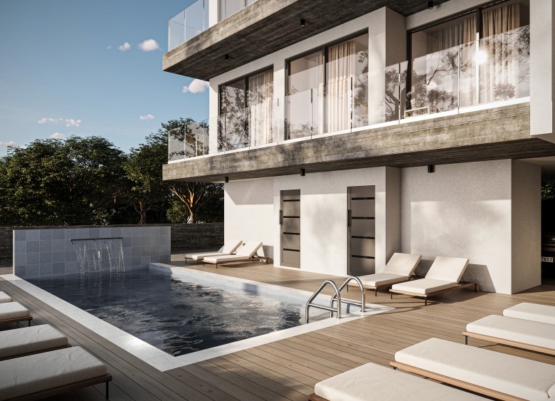 An exceptional block of high-end apartments located in the beautiful town of Universal, Paphos. The exclusive complex features three stories of luxury living, with each floor comprising spacious and elegant two-bedroom apartments. The apartments have been designed with contemporary style and luxury in mind. The living spaces are open and inviting, with high-end finishes throughout, including beautiful Italian tiles and modern light fixtures. The bedrooms are bright and airy, with large windows that allow plenty of natural light to flood in, creating a relaxing and comfortable environment. The ground floor of the complex boasts a beautiful poolside area with communal changing rooms, storage spaces, and parking spaces. Offering a lifestyle of luxury and comfort, with underfloor heating providing ultimate comfort throughout the year. The kitchens come fully equipped with modern appliances and high-quality counters, creating the perfect space for culinary exploration. This unit has a roof garden area of 114 square meters. Delivery – 16 months.