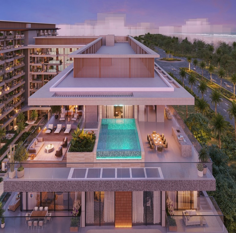 Penthouses feature private pools and expansive terraces with panoramic vistas