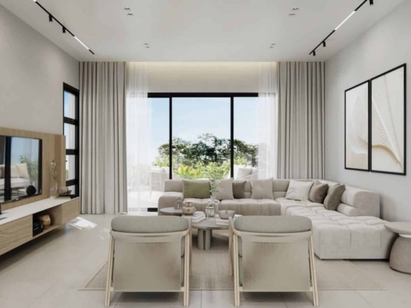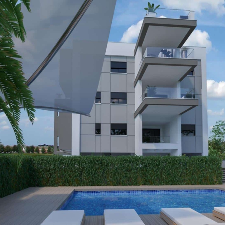 A modern, beautifully designed penthouse in the sought-after Panthea area, offering stylish living in a prime location. Enjoy a spacious private roof garden with stunning panoramic views—perfect for relaxing or entertaining. The property also includes an 18m² versatile ground-floor room, ideal for use as an office, gym, or extra storage. Residents benefit from a communal pool, providing a perfect setting for leisure and socializing.