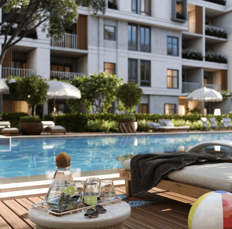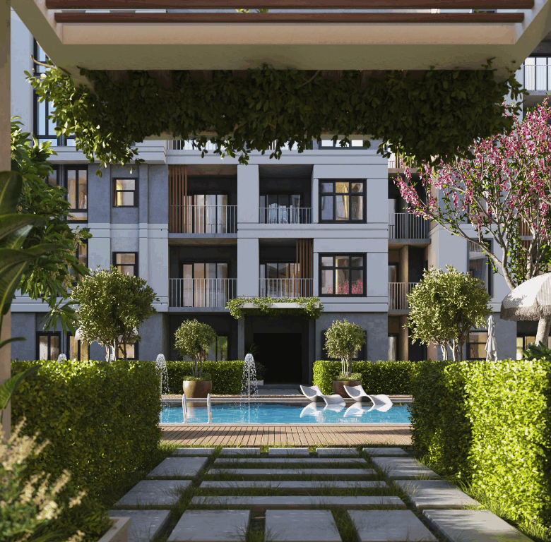 The resort is perfectly designed for luxury lifestyle clients featuring swimming pools, gardens, bars, restaurants, laundry, fitness club, supermarket, and hotel reception with concierge service, satellite TV, and internet connection.