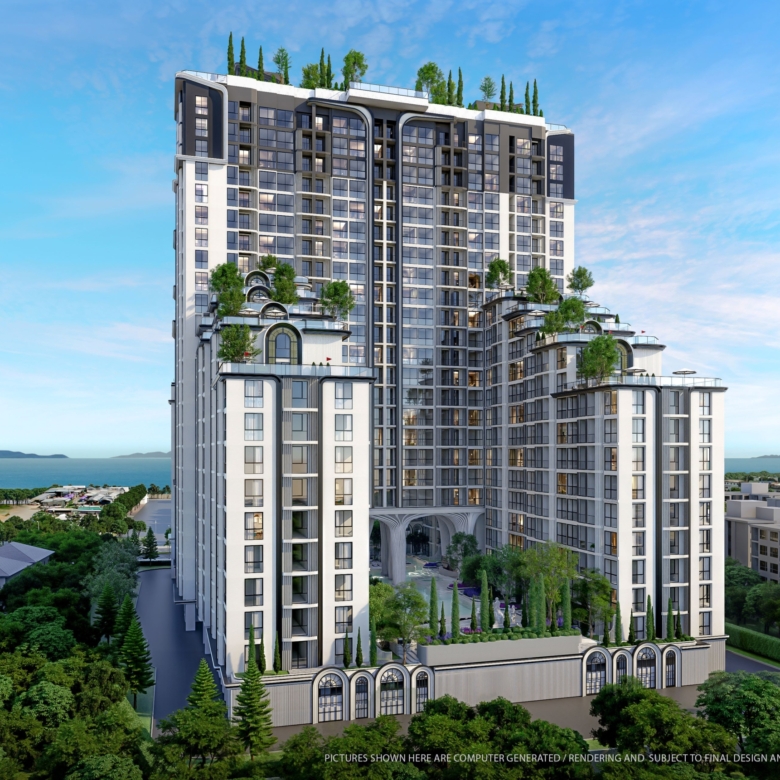 Location: Jomtien 2nd Road (next to Atlantis project)Land size: 6-7 raiStructure: 24-story complex with 3 buildings (A, B, and C) in a pyramid designUnit types: