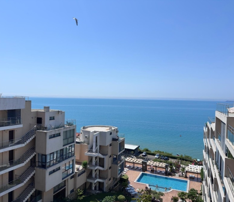 Premium apartment near the sea! 1 BED apartment, 65 sq.m., with sea views, in Dolce Vita 2, Sveti Vlas, 50 m to the sea. We are pleased to offer you this elegant apartment which is part of prestigious apart-complex Dolce Vita in Sveti Vlas resort. Distance to the sandy beach is only 50 m. The apartment offers new modern furniture and equipment. 5th floor, with direct views to the sea. Living area – 65 sq.m. The space of the apartment is used practically and wisely: a living room with a corner kitchen area and a separate area for relaxation, an isolated bedroom with a large wardrobe, a bathroom equipped with a shower, a compact separate hallway, a large terrace with an exit from two rooms and a direct view to the sea. The apartment is fully furnished and equipped on a turnkey basis. Dolce Vita 2 is one of the complexes in the resort town of Sveti Vlas with a premium level of service. The sea is literally fifty meters away, half a kilometer away is the yacht port Marina Dinevi and all the diverse city and resort infrastructure. On the territory of the complex, owners and guests have access to a SPA, guarded parking, swimming pools, a jacuzzi, a sauna. There is Act 16, suitable for year-round use. The maintenance fee is 650 EUR per year.