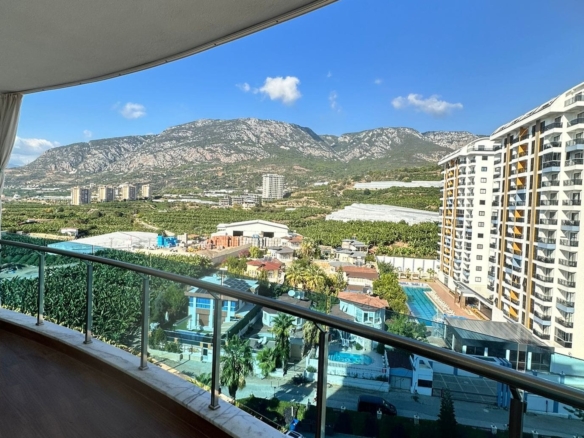 Urgent furnished apartment for sale in Mahmutlar – This urgent furnished apartment for sale in Mahmutlar is located in the prestigious Azura Park Residence, offering a luxury hotel-style living experience. The 1+1 unit is 70 m² and situated on the 8th floor. It comes fully furnished and offers a beautiful mountain view, providing a peaceful environment close to nature.