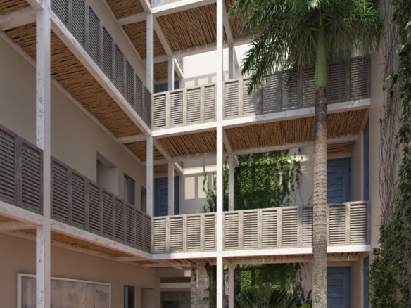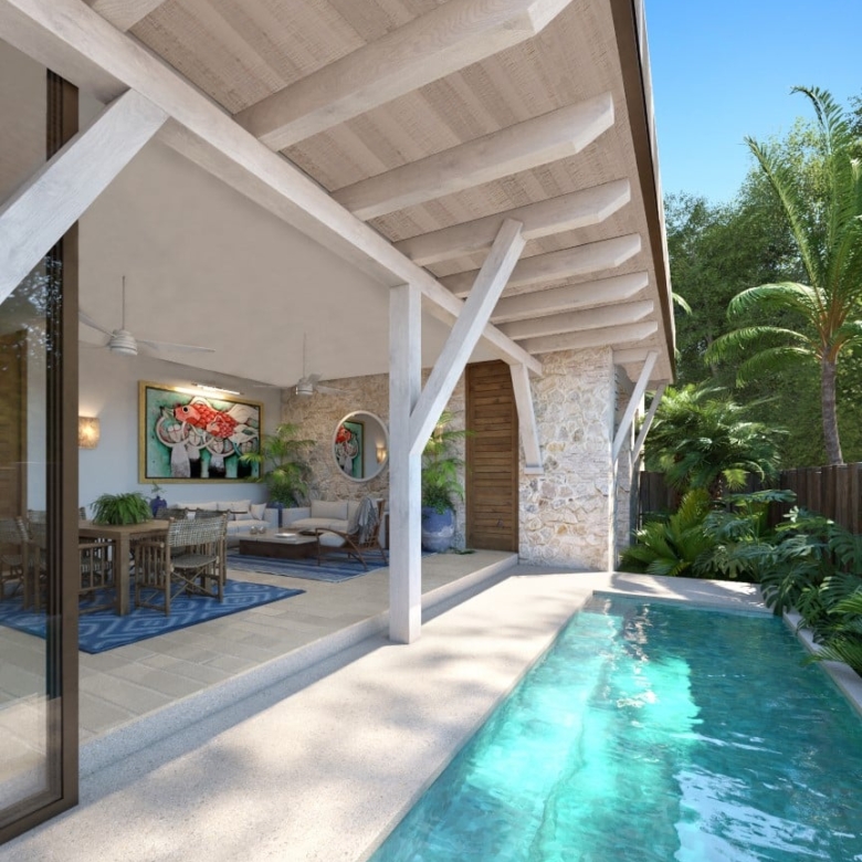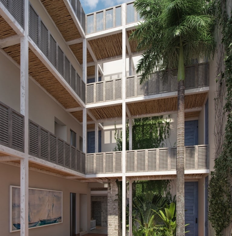 Puerta Azul offers a boutique living experience with just nine exclusive residences, all featuring private pools, large terraces, and rooftop access with panoramic jungle views. Amenities include an elevator, yoga palapa, running trail, market, clubhouse, and a temazcal—all designed to support a wellness-focused lifestyle.