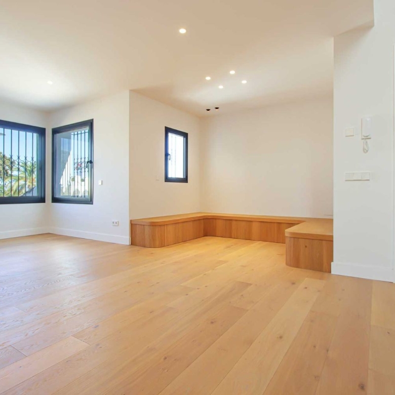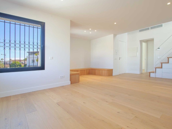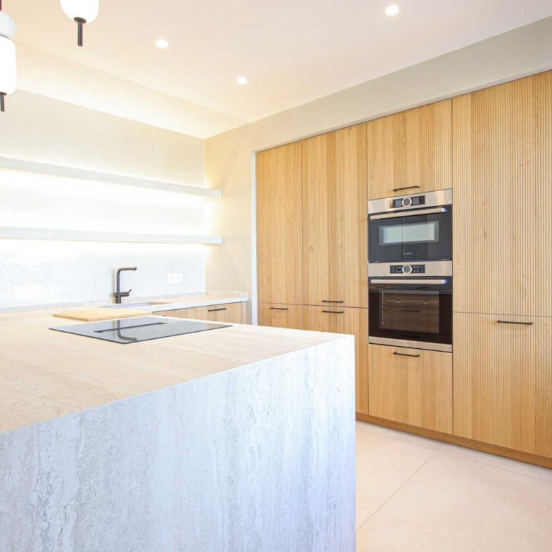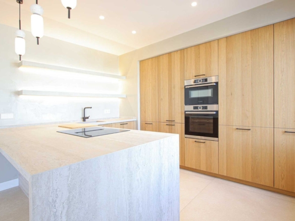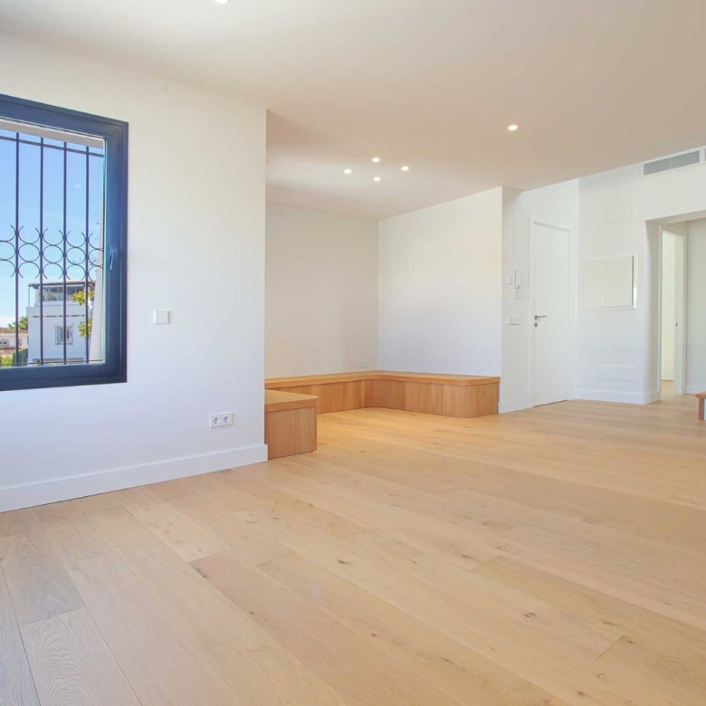 This luxurious 2-bedroom penthouse in Nueva Andalucía, Marbella, is a blend of contemporary elegance and Mediterranean charm. The open-plan design connects the living, dining, and kitchen areas, with high-quality materials and minimalist finishes. The kitchen is equipped with state-of-the-art appliances, ensuring comfort and functionality. The spacious bedrooms, each with elegant wooden floors and built-in closets. The bathrooms follow a minimalist aesthetic, featuring walk-in showers, integrated shelving, and natural wood accents.