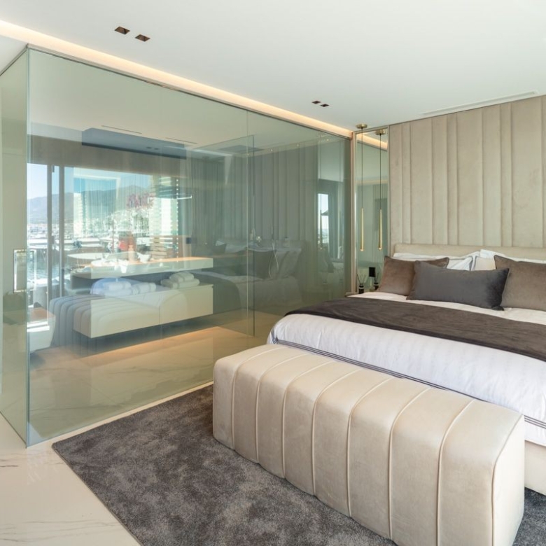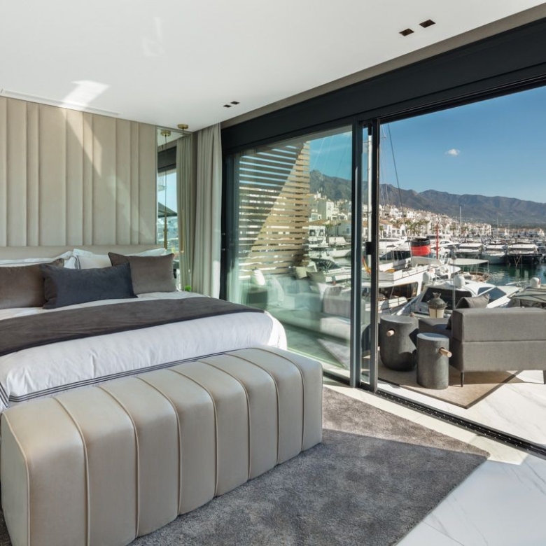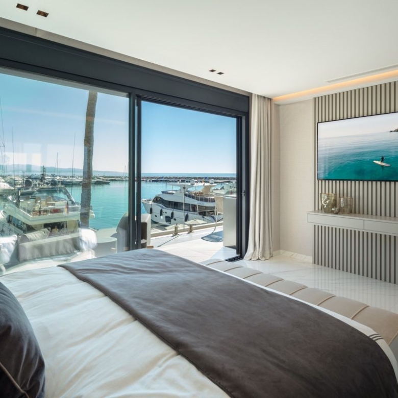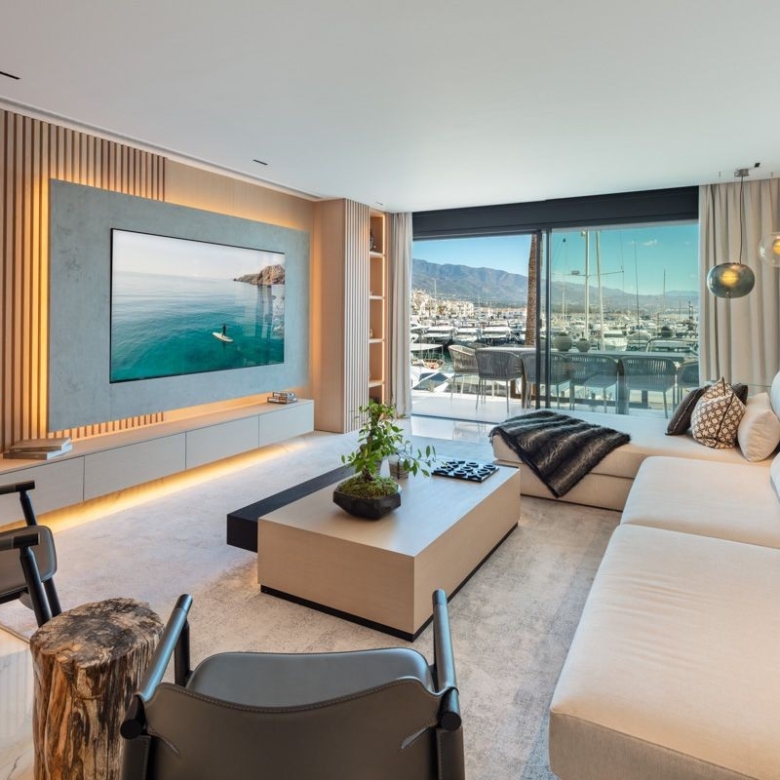 A sleek contemporary apartment located within the the famous Puerto Banus Marina, showcasing jetliner panoramic views to the Mediterranean Sea and harbour. Experience luxurious coastal living in Puerto Banus, with endless designer stores, avant-garde restaurants and luxury leisure activities to enjoy under the spectacular Marbella climate. Recently renovated with the highest qualities and complemented with refined contemporary design, each division has been maximised to its full potential and ensures that the distinguishable features are the magnificent panoramic sea and port views. Throughout the property discover top-of-the-line features such as an open plan living with almond wood panelling incorporated LED lighting, leading directly to the exterior terrace with frontline views towards the port, a sleek fitted kitchen complete with top-level Gaggenau appliances and 3 opulent bedrooms, each with their own en-suite bathrooms. Discover a lavish apartment with all the best Marbella has to offer at your fingertips.