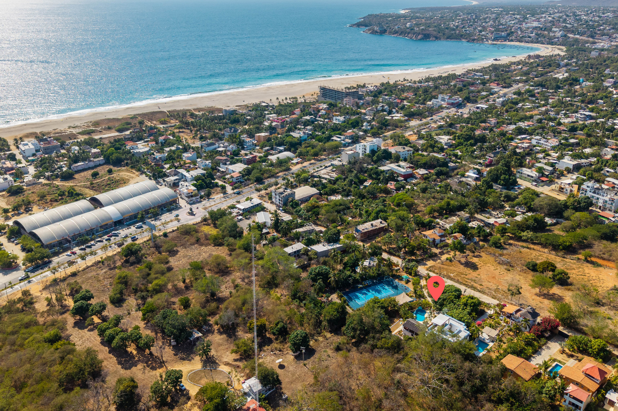 Prime Ocean-View Investment Opportunity in Zicatela! Nestled just footsteps from the vibrant Zicatela Market, this exceptional ocean-view property offers an unparalleled investment opportunity in one of Puerto Escondido’s most sought-after locations. Sitting on an expansive 41,635 Ft2 / 3,868 M2 lot, this stunning estate boasts nine bedrooms and eight bathrooms, spread across multiple living spaces designed for both privacy and high rental income. The property features two apartments, one with a single bedroom and another with two bedrooms, as well as a spacious three-bedroom, two-bathroom apartment and an additional three-bedroom unit on the third floor, allowing for flexible accommodation options with lock-off bedrooms that maximize rental potential. Beyond its ideal layout, this property is a true tropical paradise, offering breathtaking ocean views and an array of resort-style amenities. A two-level swimming pool serves as the heart of the outdoor space, surrounded by lush gardens, a sundeck spanning 753 feet (70 meters) for sun-soaked relaxation, and a poolside bar perfect for entertaining. A rooftop palapa provides a shaded retreat with panoramic views of the Pacific, while a tennis court offers an added touch of luxury for those who enjoy an active lifestyle. One of the most valuable features of this estate is its CFE independent transformer, ensuring a reliable and uninterrupted electricity supply, a rare and highly sought-after advantage in the area. Whether you’re looking to generate significant rental revenue, create a boutique hospitality business, or own a luxurious coastal retreat, this property offers the perfect combination of location, amenities, and investment potential. Don’t miss the chance to own this incredible piece of paradise in Zicatela. Contact us today to schedule a private viewing!