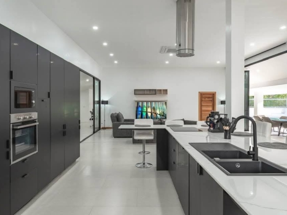 This fully renovated Rawai villa for sale is a rare opportunity to own a spacious, high-spec residence in one of Phuket’s most exclusive residential communities. Located in the elite Soi Nanachat area of Rawai, this expansive 4-bedroom, 6-bathroom villa has been completely transformed with brand-new wiring, modern plumbing, and luxurious finishes throughout. Tucked at the end of a peaceful street, the villa enjoys unmatched privacy, making it the perfect tropical retreat for large families, retirees, or luxury investors seeking a stylish home with premium outdoor living features. Property Features at a Glance Price: 36,000,000 THB (unfurnished) Land Size: 1,050 sqm Internal Living Area: 330 sqm Total Covered Area: 583 sqm Outdoor Kitchen: 52 sqm of fully functional cooking and entertainment space Swimming Pool: 12×6 meters with tanning ledge, jacuzzi, and outdoor shower Bedrooms: 4 spacious, ensuite bedrooms, all with direct pool access via bifold doors Bathrooms: 6 modern bathrooms with premium fittings Elegant Interior Design & Modern Comfort The main living area features soaring 3.8-meter-high ceilings and spans 85 sqm, creating a sense of airiness and openness. The heart of the home is the European kitchen, fully equipped with: Double fridge freezer Built-in oven, induction hob, microwave Double sink and dishwasher Large island with seating for 8 An additional 60 sqm lounge offers versatility as a home office, second living space, or a garden room—perfect for relaxation or remote work. Outdoor Living at Its Best This Rawai villa for sale is built for entertaining, featuring a dedicated outdoor kitchen and bar area, complete with: Built-in gas BBQ Cabinets and storage Dining table Bar seating for 6–8 guests Whether hosting a sunset BBQ or enjoying family meals, this outdoor setup complements the tropical garden and pool deck beautifully. Additional Amenities Air conditioning throughout the villa 4-car garage with electrical supply and lighting Large driveway fits up to 10 vehicles Laundry room with 15kg washer-dryer and 1.5 basin Fully landscaped garden for peace and privacy Unbeatable Rawai Location Soi Nanachat in Rawai, South Phuket, is known for its upscale homes and quiet, secure setting. The villa is: Minutes to Nai Harn Beach and Rawai Pier Close to international schools, restaurants, and wellness centers Less than 1 hour to Phuket International Airport Ownership & Pricing Ownership: Freehold via Thai Company (easy transfer) Renovation Status: Recently and fully renovated Why This Rawai Villa for Sale Stands Out Unlike other listings, this villa offers both indoor grandeur and outdoor versatility. It’s ideal for buyers looking for: A move-in-ready estate with no renovation needed A private, quiet retreat in a prestigious area Excellent potential for luxury rental returns Book Your Private Viewing Viewings are highly recommended to truly appreciate the scale, finishes, and layout of this stunning home. Don’t miss this opportunity to own a top-tier Rawai villa for sale in one of Phuket’s finest neighborhoods. Contact ThaiEstate today to schedule a tour or receive more details.