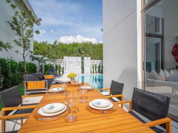 Prime Location in Cherngtalay, Phuket Discover the perfect blend of luxury, comfort, and convenience with this modern-style private pool villa located in the prestigious Cherngtalay area. Whether you’re looking for a serene home or a profitable investment, this villa is ready for you. Property Features: 3 Spacious Bedrooms (each with a private en-suite) 3.5 Bathrooms including a guest toilet Two-story layout with open-plan living and dining area Direct access to a lush garden and a large private swimming pool (5.2×12m) Expansive pool deck (37㎡), ideal for relaxing or entertaining Smart home system with automated controls Fully furnished and ready to move in Land plot size: 400 sqm Built-up area: 402 sqm Covered parking Secure gated community Interior & Living:Enjoy a seamless indoor-outdoor lifestyle. The modern design emphasizes natural light, comfort, and functionality. The villa comes fully equipped with top-of-the-line appliances and stylish furniture—all included in the sale. Perfect for Residential or Investment UseWhether you’re seeking a permanent residence, vacation home, or rental investment, this villa ticks all the boxes. Prime Location: 5 mins to HeadStart International School Cherngtalay & Blue Tree 10 mins to Boat Avenue, Villa Market, Laguna Beach, and Layan Beach 20 mins to UWC Thailand International School View Today – Move in TomorrowThis villa is available for immediate viewing and move-in. Don’t miss this exceptional opportunity. Sale Price: 21,000,000 THB✔️ Includes all furniture✔️ Freehold ownership✔️ Ready to move in