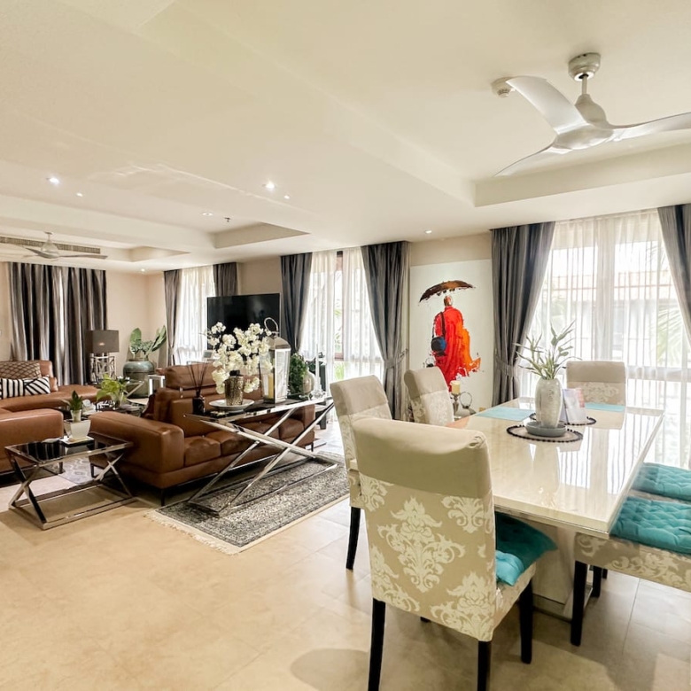 Nestled within the prestigious Royal Phuket Marina, this newly renovated and elegantly furnished penthouse offers an unparalleled blend of luxury, comfort, and breathtaking views. Designed for those who appreciate the finer things in life, this residence epitomizes sophisticated waterfront living. Key Features: Spacious Interiors: The penthouse boasts expansive living areas with high ceilings and floor-to-ceiling windows, ensuring abundant natural light and panoramic vistas of the marina and the Andaman Sea. Private Rooftop Oasis: A standout feature is the private rooftop deck, complete with a plunge pool. This exclusive space provides 360-degree views, making it perfect for relaxation or entertaining guests. Modern Amenities: Fully furnished and ready for immediate occupancy, the penthouse is equipped with contemporary Western appliances, premium finishes, and elegant Thai architectural details. Exclusive Facilities: Residents have access to a range of amenities, including a fully equipped gym, tennis court, underground parking, and 24-hour security, ensuring a comfortable and secure lifestyle. Prime Location: Centrally located in Phuket, the marina offers easy access to international schools (400 meters), hospitals (4 km), shopping malls (5 km), and pristine beaches (8 km). Why Choose Royal Phuket Marina? As Thailand’s only 5 Gold Anchor certified marina, Royal Phuket Marina is renowned for its world-class facilities and sustainable practices. Residents enjoy a vibrant community, waterfront dining, and the convenience of berthing their yachts on-site. This penthouse is more than just a residence; it’s a gateway to an exclusive lifestyle in one of Phuket’s most sought-after locations. Embrace the opportunity to own a piece of paradise at Royal Phuket Marina.