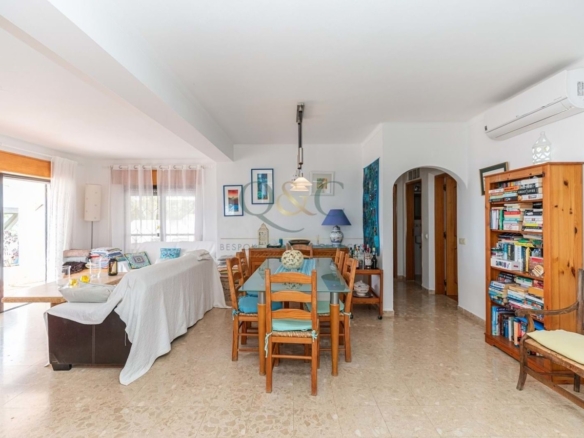 The entrance door opens into a hallway with open-plan living & dining areas with a wood burner fireplace. From the lounge patio doors open onto the terrace and the heated pool. A separate kitchen is fully fitted with quality appliances.