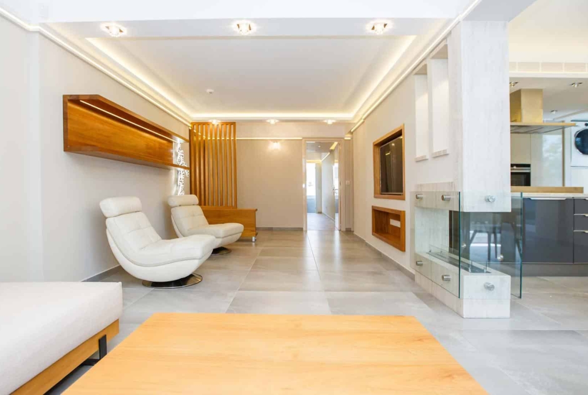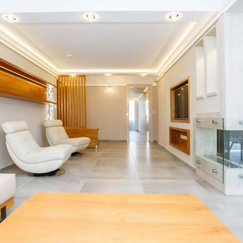 This luxury, fully furnished apartment is located by the beach in one of the most popular and beautiful areas of Limassol, near the Dassoudi Park. The apartment is a two bedroom but it can be easily converted to 3 bed flat. Convenient as a permanent residence and for an unforgettable holiday at any time of the year. The dining area with panoramic windows is easily transformed into an open terrace surrounded by eucalyptus trees. The bio-fireplace in the center of the apartment is a good solution for long cozy winter evenings.