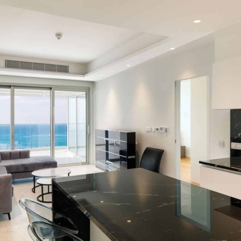 This is a beautiful seaside apartment that gives you the best of both worlds – a peaceful resort-style living and easy access to the lively Limassol city. It has two bedrooms and a modern design that makes the most of the stunning beach views. The apartment is designed to be comfortable, elegant, and filled with natural light all day long. You’ll feel like you’re living in a 5-star resort with all the luxury amenities available to you at any time. The open plan living area is perfect for entertaining and relaxing. You can enjoy the breathtaking views through the floor-to-ceiling windows. The master bedroom is light and modern, perfect for a relaxed beachfront lifestyle. You’ll have access to the multi-award winning 5* hotel which has excellent dining venues, a blue-flag beach, sports facilities, and a luxurious spa.
