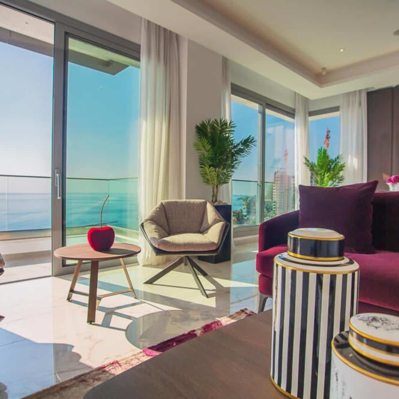 An Oasis of Refined Luxury, clad in glass and marble, opens out to the azure coast of one of Limassol’s many Blue Flag beaches, whilst the neighboring area is host to Limassol’s buzzing shopping and business hub. High-end shops, cafés, fine dining establishments and luxury hotels, as well as local schools, banks and other businesses, are all located within the vicinity, allowing residents to enjoy the exclusivity of beachfront living with the convenience of having all necessities within reach.
