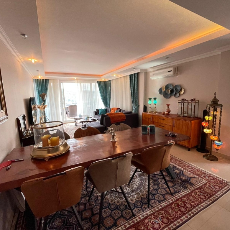Looking to buy a sea view apartment in Alanya with rich on-site amenities? This 2-bedroom, 100 m² apartment on the 2nd floor offers panoramic sea and mountain views and access to a full activity social complex — just 1 km from the beach.
