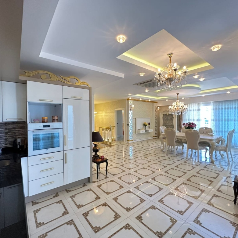 This stunning 3+1 resale apartment is located in the heart of Mahmutlar, Alanya, on the 12th floor of a modern residential building. With a generous 220 m² living space, 3 balconies, and spectacular views of the sea, mountains, and city, this home offers an exceptional lifestyle for permanent living or investment.