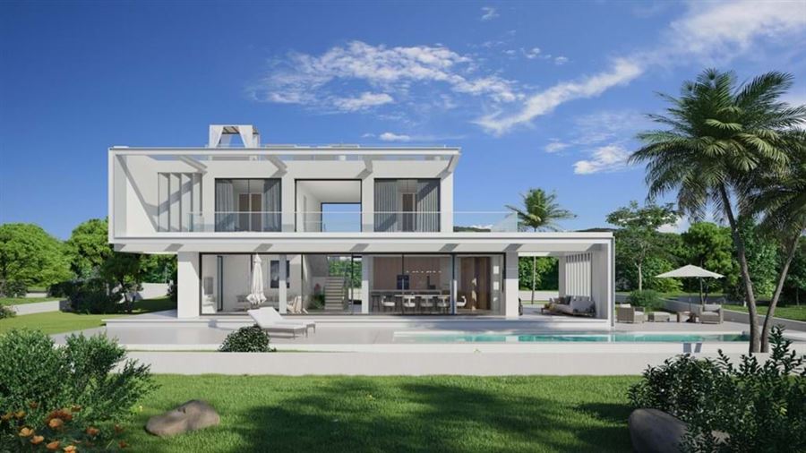 This four bedroom villa for sale in Carvoeiro is situated within a five minute drive from three golden beaches: Praia do Carvoeiro, Praia do Paraíso and Praia dos Castelos. The build has broken ground so it’s currently under construction with an estimated completion date around early 2025.With a modern architectural design, this property will be spread over two floors and complimented by a rooftop terrace offering panoramic ocean views. The ground-floor will comprise an open plan lounge, dining area and state of the art kitchen equipped with integrated appliances and a large breakfast counter.This area has floor to ceiling windows and sliding doors that look out / head out onto the private terrace where you’ll find a private swimming pool, lounge areas and gardens.Two bedrooms are on the ground level, both with en-suite bathrooms, fitted wardrobes and sliding doors leading out to the private garden. Next to one bedroom, there are external stairs that head up to the roof terrace.Upstairs, there are two more bedrooms also with en-suite bathrooms, fitted wardrobes and access to private terraces. All bathrooms will have underfloor electric heating and all bedrooms will have aluminium, electric shutters whereas living areas will have internal electric blinds.Carvoeiro, a delightful seaside town, is famous for its peaceful atmosphere, golf amenities, and inclusive community. Its tranquil setting and amiable residents create the perfect spot for both golf lovers and those in search of a serene getaway.