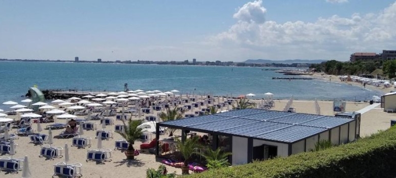SEA VIEW apartment, 68 sq.m., in luxurious complex Villa Antorini, Sveti Vlas, 100 m to the sea We would like to present you this beautifully furnished 1 bedroom apartment in the newly built complex Villa Antorini in St. Vlas resort. Distance to the sea is 100 m and. Near-by there is a children’s playground and a restaurant. The property has a living size – 68 m2 and is situated on the 5th floor. It comprises of one spacious room that combines kitchen with dining and sitting-room, one bedroom, a bathroom with shower-cabin and new accessories and a terrace. The apartment offers equipped kitchen with fridge and microwave and air-conditioner. Magnificent views to the sea! The apartment has a south-eastern exposure and views towards the sea and surroundings. Annual maintenance fee – 8 euro / m2 The complex features a large panoramic terrace on the roof overlooking the sea and a barbecue, access to which is only available from this entrance! Villa Antorini offers: – Swimming-pool;- Lifts that operate 4 seasons; Wi-Fi; Parking area; Security; Children’s playground The complex is suitable for living 4 seasons. Shopping facilities and amenities are within short walking distance. 100 m to the sea