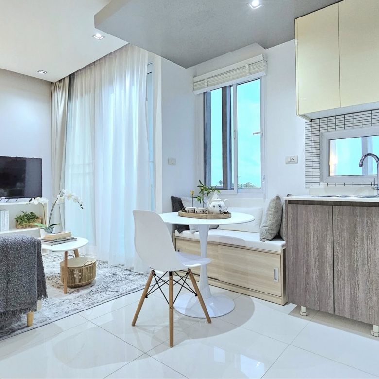 The 29.30 sq.m. space comes fully furnished with tasteful décor, ready to move in or rent out immediately. Situated in a prime location on Jomtien Beach Road Soi 8, the condo is surrounded by cafés, restaurants, fresh markets, and convenient public transportation, making it perfect for both residence and investment.