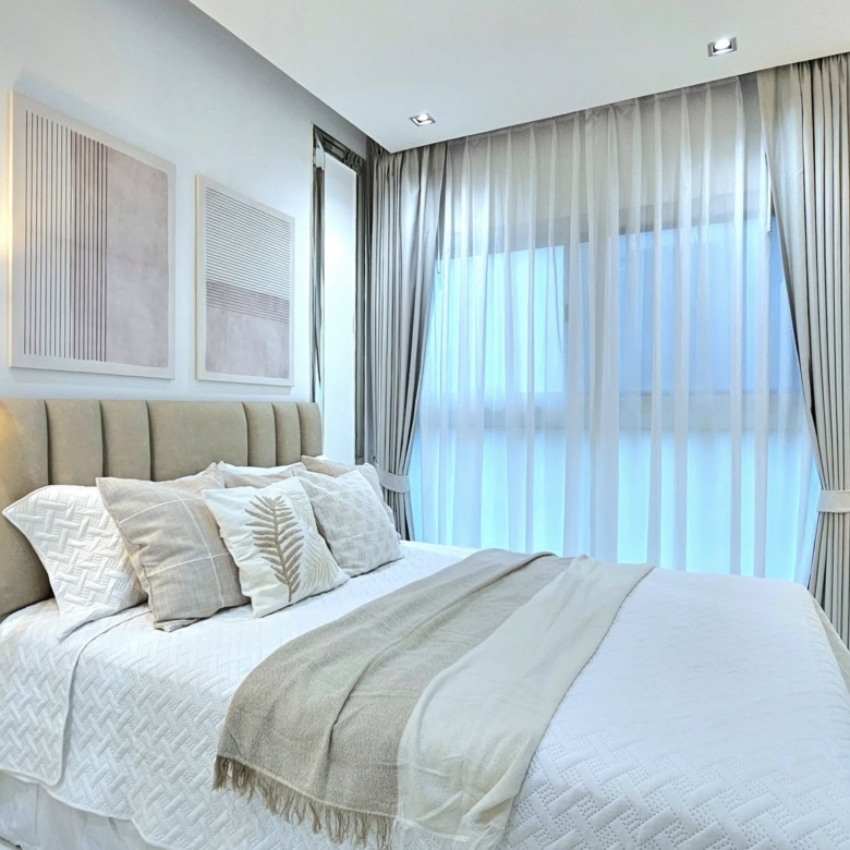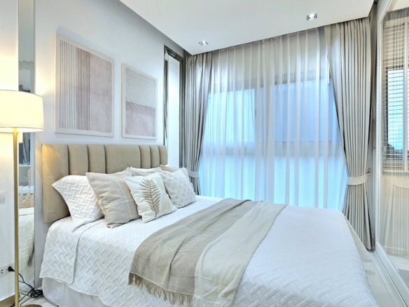 Discover this beautifully designed 1-bedroom, 1-bathroom condo located on the 5th floor of The Gallery Condominium, just a short 300-meter walk to the sands of Jomtien Beach. This corner unit offers a partial sea view and is equipped with double-glazed windows that effectively reduce noise, heat, and sunlight—ideal for comfortable living in the heart of Jomtien.