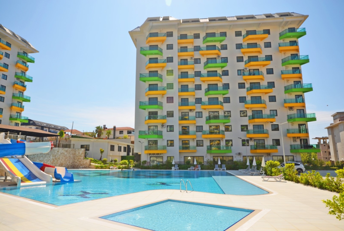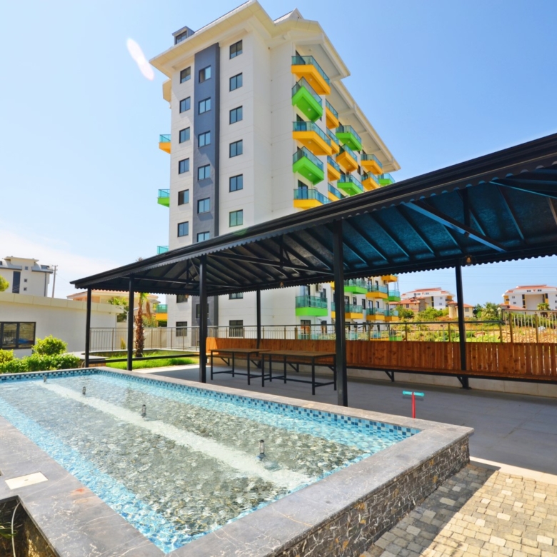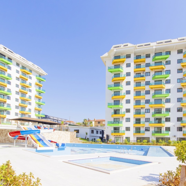 Konak Green Towers offers full resort-style amenities including indoor and outdoor swimming pools, aqua park, children’s pool, Turkish bath, sauna, and fitness center. Residents can also enjoy a cinema room, billiards, table tennis, and outdoor sports courts for tennis, basketball, and football. The complex provides Wi-Fi, generator, elevators, open and covered parking, 24/7 security with camera systems, and beautifully landscaped areas with gazebos and barbecue spaces. Thissea view flat in Avsallaris an ideal option for investment or holiday living.