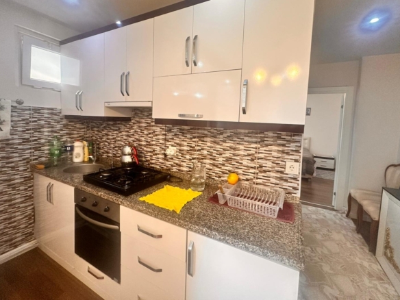 Property for sale in Mahmutlar – This property for sale in Mahmutlar is a fully furnished 1+1 apartment located on the 2nd floor of Esen Apartment. With a spacious 55 m² area, it offers a comfortable living space with modern furnishings. The highlight of this property is the stunning sea view from the balcony, creating a relaxing and peaceful atmosphere. The building also includes an elevator, providing easy access.