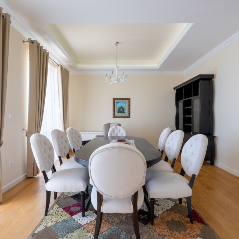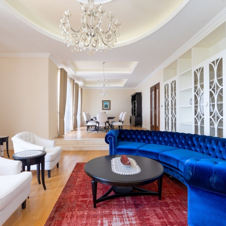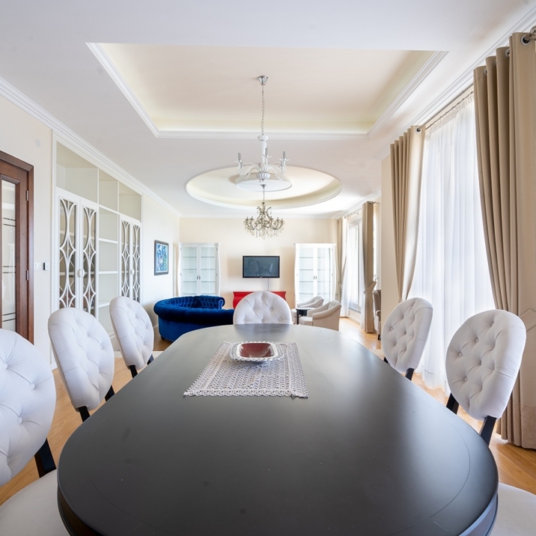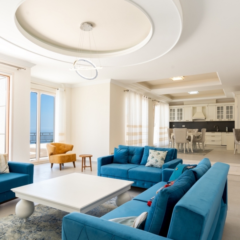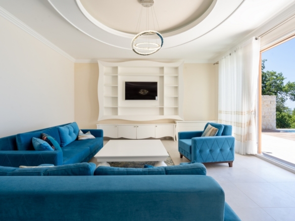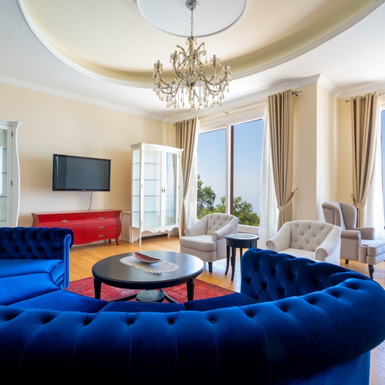 This luxury newly built villa with an amazing sea view is located in Reževići, a small and quiet place between Budva and Petrovac. The plot measures an area of 500m2, with a spacious pool and modern amenities.The villa consists of four levels, between which you can move by elevator.The basement consists of a sauna and a big storage area. On the ground floor, you will find a spacious open plan living area/dining room, beautiful and well-equipped kitchen, and bathroom.The first floor consists of a dining and living area, 1 bedroom with bathroom and one large terrace with a sea view. The living room is furnished in a classic style, in colors that reminiscent of the marine environment.The second floor consists of 3 spacious bedrooms and 3 bathrooms, with two large terraces, both with a magnificent sea view.In front of the house is a wonderful swimming pool. In addition to other listed facilities, the villa also has a Finnish sauna.Villa is situated in a quiet and peaceful area, 15km from Budva Old town and 37km from Porto Montenegro marina.