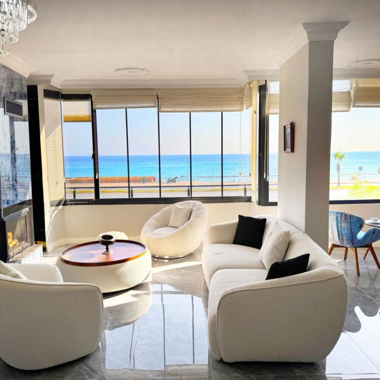 Waking up to the gentle rhythm of the waves and watching the sun set behind the historic Alanya Castle is not just a holiday dream—it can be your everyday reality. This sea front and sea view apartment in Alanya sits Tosmur district- directly on the shoreline, offering an uninterrupted front-row view of the Mediterranean’s endless blue and the timeless silhouette of the castle. Every glance from your windows feels like looking at a postcard.