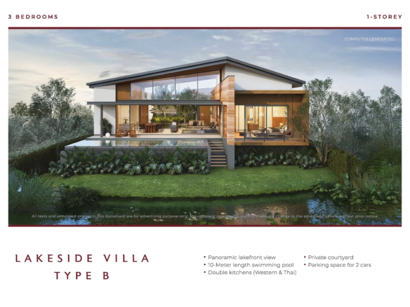 Nestled beside a tranquil lake in the vibrant heart of Phuket, Serrana Lakefront Pool Villas offers an exclusive collection of 20 luxury villas that seamlessly blend contemporary sophistication with the serene beauty of nature. Located in Manik, Cherngtalay, this development provides residents with a harmonious balance of modern living and natural tranquility. Architectural Excellence and Design Each villa at Serrana is meticulously crafted to inspire and elevate your lifestyle. The design concept emphasizes brightness, breeziness, boldness, and wellness, ensuring a living environment that is both fresh and enduring. The use of organic materials throughout the villas creates a breathable home atmosphere, fostering a sense of tranquility and authenticity. High ceilings and expansive windows invite abundant natural light, enhancing the connection between indoor spaces and the serene outdoor environment. Villa Configurations and Features The development offers both single and double-storey villas, available in 3 or 4-bedroom configurations, each with ensuite bathrooms. Key features include: Spacious Living Areas: Open-plan living and dining spaces designed for comfort and versatility. Gourmet Kitchens: Fully equipped Western-style kitchens with islands/breakfast bars, complemented by additional Thai kitchens for culinary enthusiasts. Private Swimming Pools: Each villa boasts a private swimming pool and a pool terrace, providing a personal oasis for relaxation. Master Suites: Master bedrooms feature walk-in closets and luxurious bathrooms, some with bathtubs, offering a spa-like retreat within your home. Additional Amenities: Select villas include multipurpose rooms, guest toilets, laundry areas, storage spaces, and covered parking for 2 to 3 vehicles. Community Amenities Residents of Serrana enjoy access to a range of communal facilities designed to enhance well-being and leisure: Fitness Center: A well-equipped gym to support an active lifestyle. 24-Hour Security: Comprehensive security measures ensure peace of mind within the gated community. Prime Location Serrana’s strategic location offers both serenity and convenience: Shopping and Dining: A short drive to Robinson Lifestyle Thalang, Boat Avenue Mall, and Porto de Phuket provides a variety of retail and culinary options. Beaches: The pristine shores of Bang Tao and Surin beaches are within a 15-minute drive, perfect for leisurely days by the sea. Golf: Proximity to Laguna Golf Phuket offers opportunities for golf enthusiasts to indulge in their passion. Accessibility: Phuket International Airport is approximately 30 minutes away by car, facilitating easy travel connections. A Lifestyle of Refined Elegance Serrana Lakefront Pool Villas is more than just a residence; it’s a sanctuary where luxury and well-being converge. Each villa is a personal retreat, offering an aspirational space that nurtures your ambitions and enhances daily life. Embrace a lifestyle of refined elegance and thoughtful design, where every detail is crafted to enrich your living experience. For more information or to schedule a private viewing, please contact us at ThaiEstate.