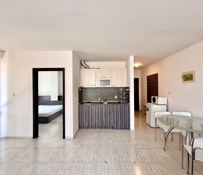 Spacious 1 BED pool view apartment, 60 sq.m., in St. Sofia, Sunny beach Spacious 1 BED fully furnished apartment for sale, with a, in complex Saint Sofia in absolute tranquility only 450 m. from the beach in Sunny beach Resort, Bulgaria. The apartment features: · 60 m2 total area,; · Second floor (with a lift) · Lounge – terracotta tiles, latex painted walls; · Kitchen box – built in kitchen, terracotta tiles; · Bedroom – terracotta tiles · Entrance hall – terracotta tiles and latex painted walls; · Bathroom and WC – Shower-cabin, terracotta tiles, faience, accessories; · Balcony – granite tiles; · PVC joinery with a windowpane; · Air conditioning Location: · in the South part of the resort, · across the street from the holiday home of Council of Ministers, · some 450m from the beach. · There is a park of 25 000 sq.m opposite it. Facilities and amenities in complex Saint Sofia, Sunny beach Resort, Bulgaria: six residential floors, two staircases and two hydraulic elevators. · 27/4 shop · 2 swimming pools for adults and children; · Lobby; · Reception; · Kinder playground; · Parking lot Construction · Monolithic reinforced construction; · Walls of red bricks; · Thermo and hydro insulation; · Excellent common parts Act 16! Maintenance fee: 500 EURper year
