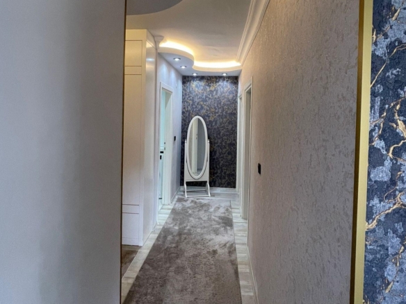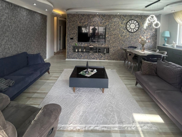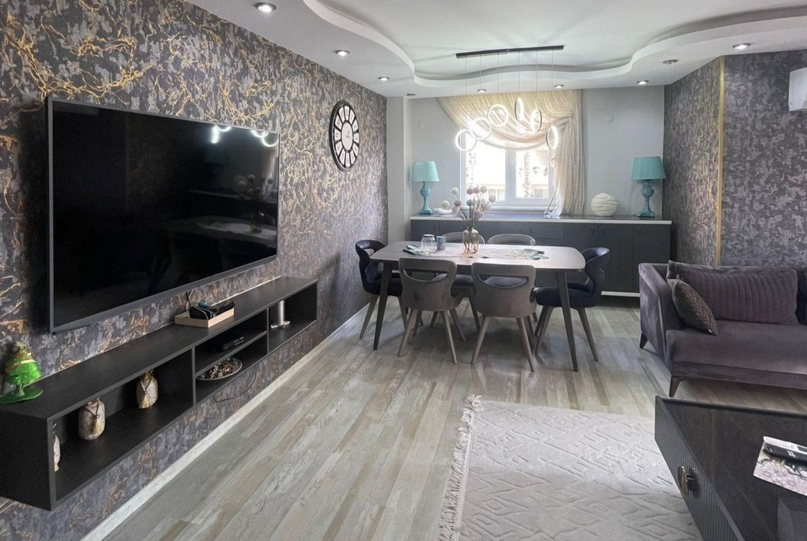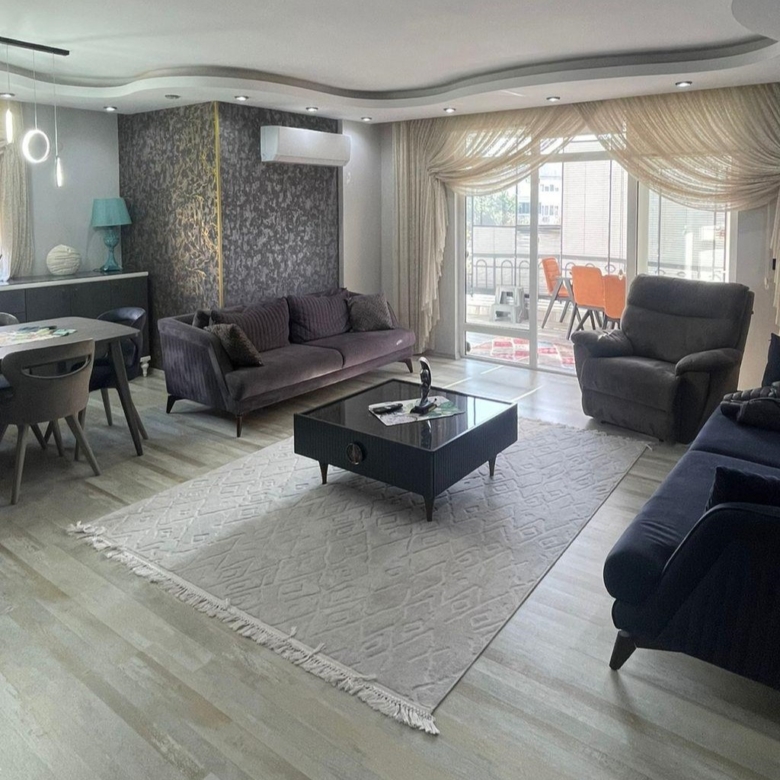 Furnished apartment in Alanya – This apartment for sale in Cikcilli offers 120m² of living space with a 2+1 layout and a separate kitchen. It comes fully furnished with high-quality Çilek & Doğtaş furniture, all under warranty. Located on the 4th floor of a 9-story building, the apartment is south, east, and west-facing, ensuring plenty of natural light throughout the day.