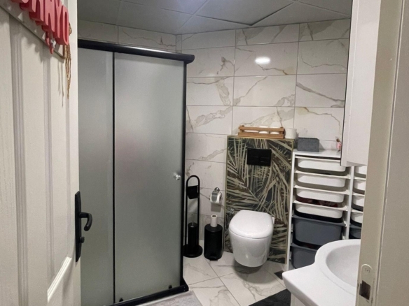 The complex features an outdoor swimming pool, double elevators, parking, a children’s playground, a gazebo, and an on-site caretaker. Situated behind Alanyum Shopping Mall, it is within walking distance of the beach, market, and city center. A fantastic opportunity with mortgage eligibility!